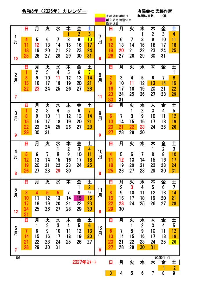 営業カレンダー